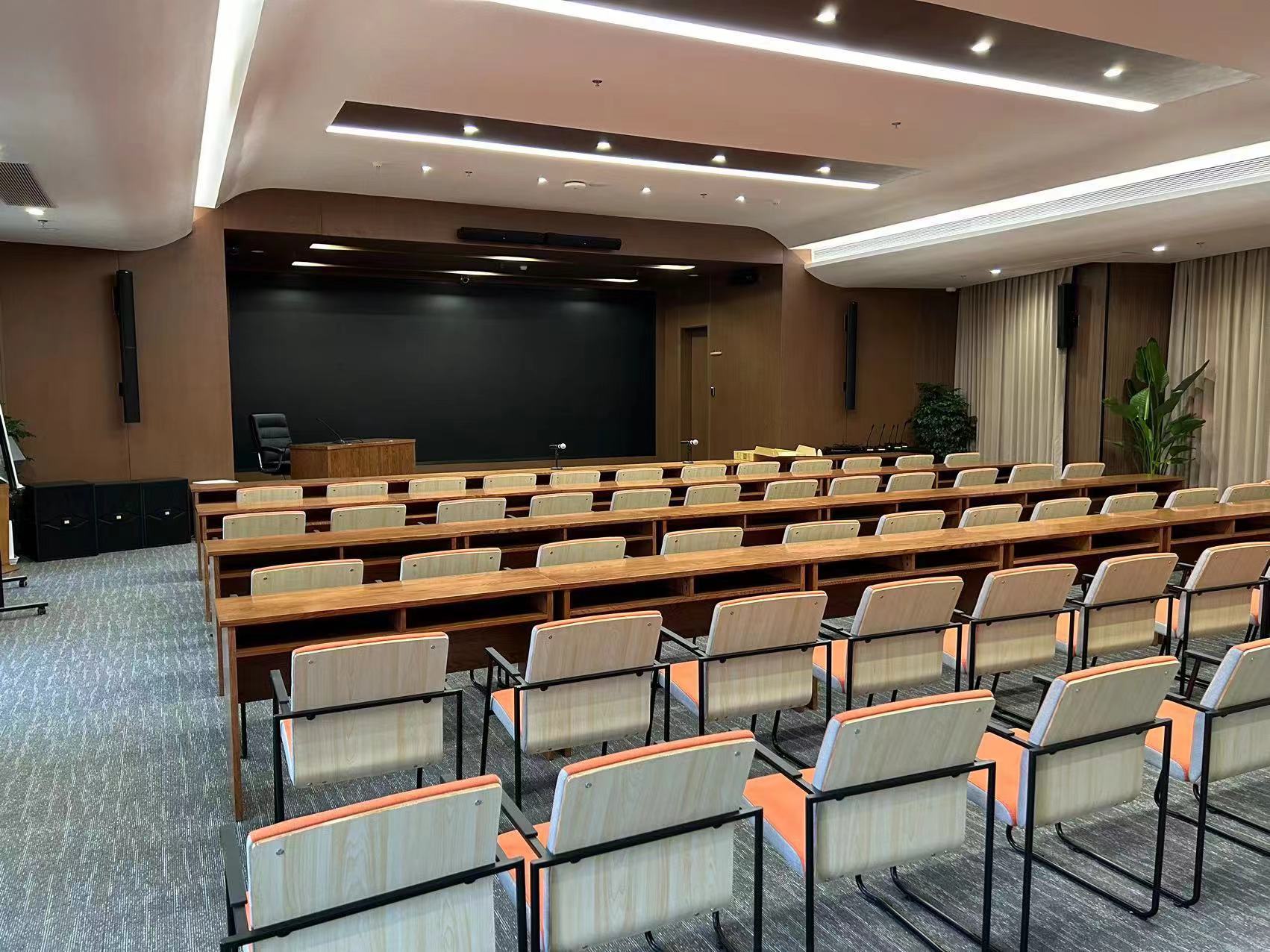 EMX助力公安部檢測(cè)中心。近日,EMX音響在公安部檢測(cè)中心完成了其多功能廳的改建工程。近300平的多功能廳中,整體裝修多為硬飾面,建聲環(huán)境不佳,并且樓層偏矮,業(yè)主希望整套音頻系統(tǒng)既能滿足日常各類型會(huì)議、報(bào)告、培訓(xùn)的語(yǔ)言類擴(kuò)聲需要,同時(shí)音頻系統(tǒng)還要滿足其在特定日期的文娛活動(dòng)擴(kuò)聲要求,包括小型表演、年終會(huì)議和電影放映的需求,并且要求設(shè)備要小型化, 和裝飾能夠匹配。
